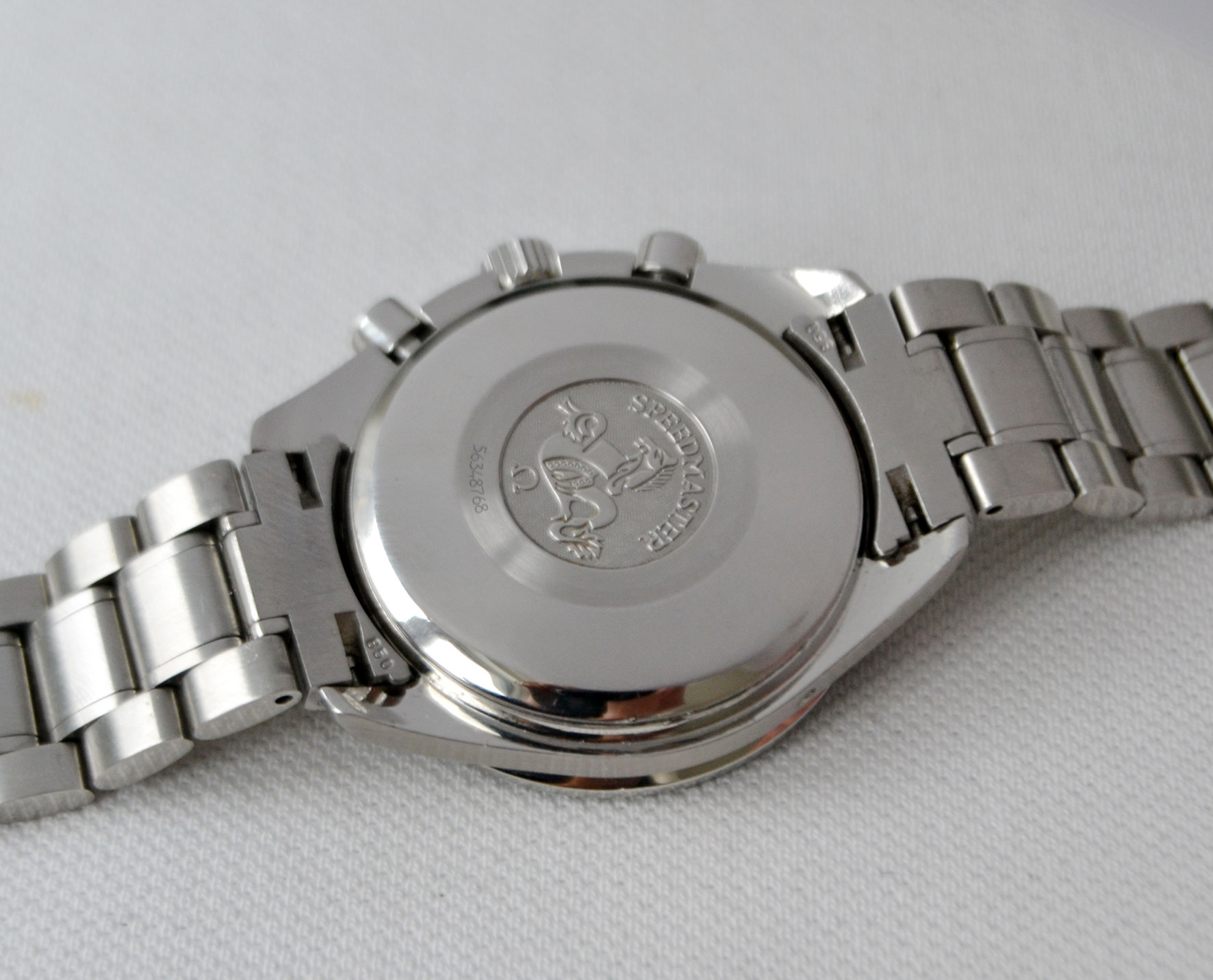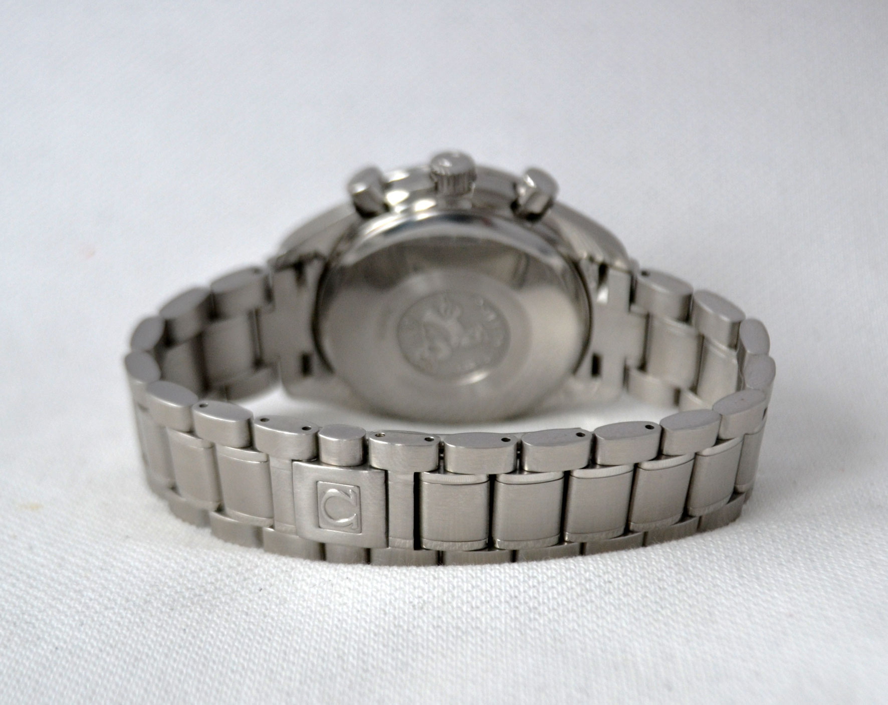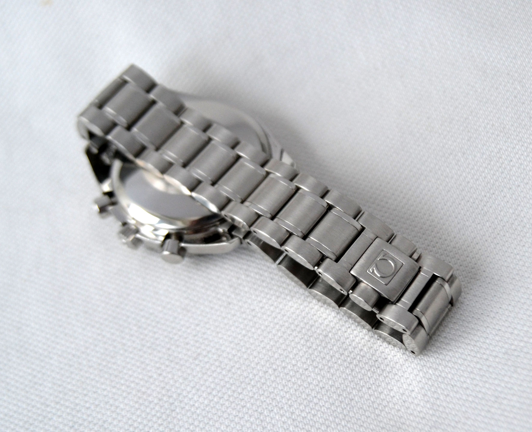 The movement is an original, self winding, 25 jewels Omega cal. 1151. It is in perfect running condition, runs strong – keeps time, all functions properly. The authentic case and sporty bracelet are made stainless steel with a fold-over clasp.